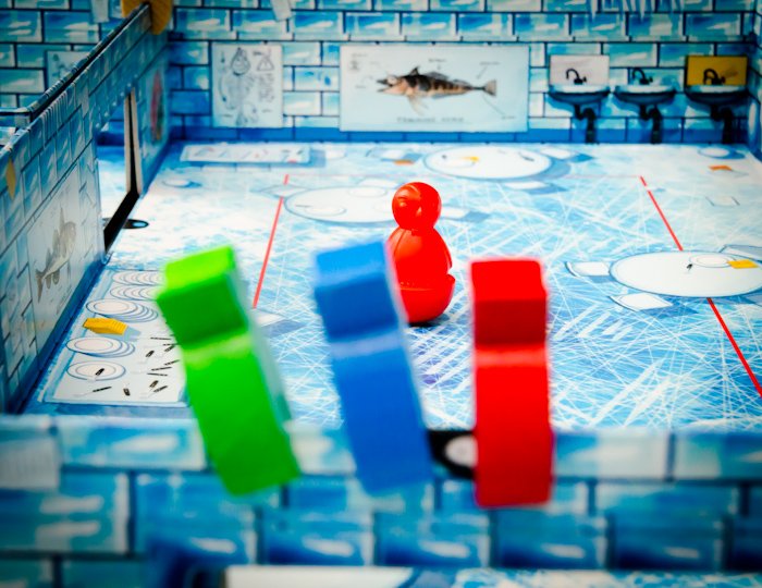 Щоб почати це веселощі, всього-то й потрібно, що з'єднати прищіпками у вигляді рибок картонні класні кімнати так, щоб збіглися дверні прорізи, вибрати одного з гравців на роль чергового і роздати дерев'яні фігурки-неваляшки пінгвінів і шкільні пропуску. Гравцям належить спритно буцати пальцями своїх підопічних через двері, збираючи кольорових рибок і карти з переможними очками.