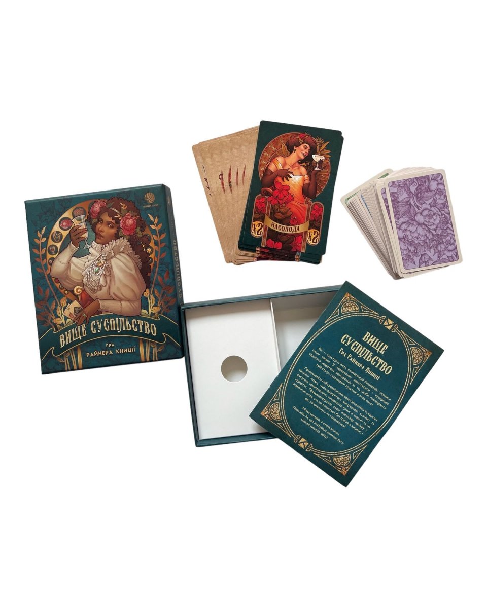 У грі «Вище суспільство» ви втілите себе у ролі багатої і успішної персони, яка має одну мету – збагатитись швидше за всіх і постати на вершині соціальної ієрархії. Гра вимагатиме від вас мудрості, стратегічного мислення та вміння ризикувати. Вам потрібно буде вигравати аукціони за рахунок карт із загальної колоди, а також намагатися економити власні кошти.