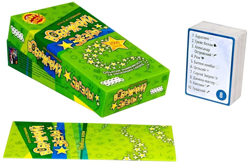 Вечірка знову зайшла в глухий кут або вам потрібен веселий привід, щоб зібратися? Візьміть з собою компактну коробку з грою «Воображарій. Зірки »і вам не захочеться розходитися по домівках! Ця балакуча і міміка-жестикулярной гра для компанії запропонує вам набір з 98 двосторонніх карт з 20 завданнями, тобто практично 2000 реальних і вигаданих персонажів, за відгадування яких гравці отримують переможні очки. Відомих дозволяється описувати словами, згадувати пов'язані з ними історичні події, співати їхні пісні, декламувати твори і показувати пантомімою (завжди мріяли зобразити Мадонну або Галустяна?). Так що є шанс похвалитися своїм красномовством, акторські дані і вмінням розуміти інших з півслова, намагаючись пояснити (або вгадати) за 60 секунд якомога більше карток. Гра «Воображарій. Зірки »триває поки кожен гравець не побуде в ролі ведучого уговоренное кількість разів, тобто і час партії, і її складність, завдяки двом різним сторонам карт, виявляться повністю під вашим контролем. Чого не можна сказати про нестримне і безконтрольному веселощі, яке з грою «Воображарій. Зірки »вам гарантовано!
