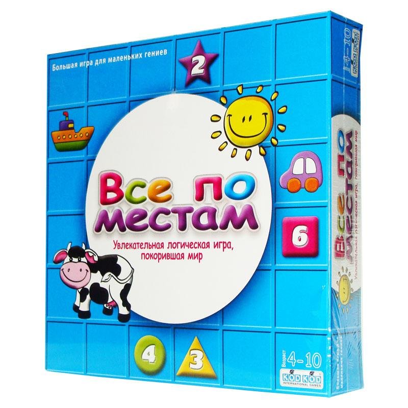 У грі «Все по місцях», за мотивами популярної головоломки, потрібно розставляти двосторонні фішки за вільними клітинам поля (на вибір: цифра або картинка), щоб вони не повторювалися в одному стовпці або ряду. Близько 50 аркушів із завданнями різної складності вкладаються під прозорий лист на ігрове поле і дозволяють вирішувати задачі безліч разів. Причому для любителів змагань є пісочний годинник і спеціальні завдання на час для 2-4 чоловік.