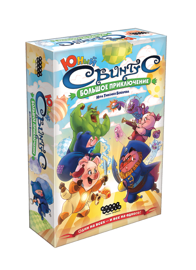 Коли тобі 4 роки, незвіданий світ, повний авантюризму і куражу, кличе тебе. Але все, що ти можеш робити, це бігати і кричати. Розвиваюча і завзята гра «Юний свиней. Велика пригода »допоможе направити невгамовну дитячу енергію в корисне русло! Тим більше що в цьому новому виданні ви знайдете відразу дві гри для 2-10 чоловік: класичний набір карт «Юний свиней» і розширення «Велика пригода», а значить - в два рази більше приємних вражень. Базова гра відмінно підійде найменшим гравцям, які мають позбутися карт на руках, викладаючи на стопку в центрі столу ті, які збігаються з верхньої картою за кольором або номіналу. Крім карт з числами, в колоді також є 80 спеціальних Суперсвінтусов, які роблять гру заплутаніше і веселіше. Полісвін, Тіхохрюн, Хлопкопит і інші забавні персонажі можуть змусити наступного гравця взяти штрафні карти, змінити напрямок ходу або, наприклад, перевірити швидкість реакції. Малюки потренують свою уважність і мислення, а коли будуть готові - можуть відправлятися в «Велика пригода», в якому сміливим Суперсвінтусам належить дати бій 48 Злосвінам: піратіщам, привидам і прибульцям. Їх колоди потрібно розмістити на столі і розкрити перші карти. Тепер гравцям належить стежити, не перемагає їх викладена карта кого-небудь з відкритих Злосвінов, як зазначено в умові. Наприклад Суперсвін того ж кольору перемагає привид, а прибульці бояться перехоплення. Так гра стає ще цікавіше, а уважність гравців злітає до небес. Сміливіше вирушайте в «Юний свиней. Велика пригода »разом з дітьми - відчуйте себе молодцем, а не холодцем!